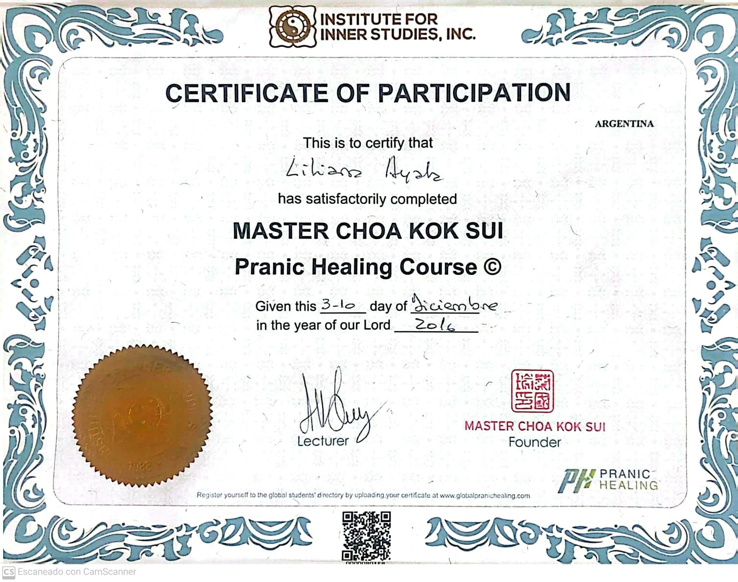 Certificada en Los Ritos Munay Ki y Rueda Medicinal en la escuela "The Four Winds" de EE.UU fundada por Marcela Lobos y Alberto Villoldo. Aquí es donde me enamoré del Chamanismo y hasta el día de hoy sigo en la búsqueda de adquirir más conocimientos.