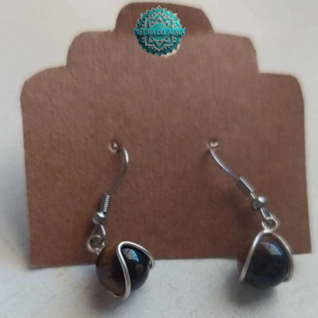 Aros de acero quirúrgico con esferas de Ojo de Tigre de 1 cm