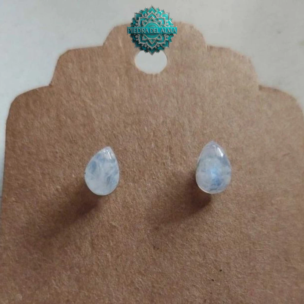 Aros de acero quirúrgico en Piedra de la Luna de la India, en forma de mini gota de 1 cm