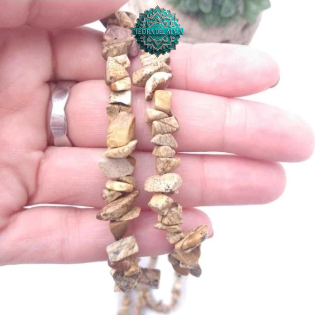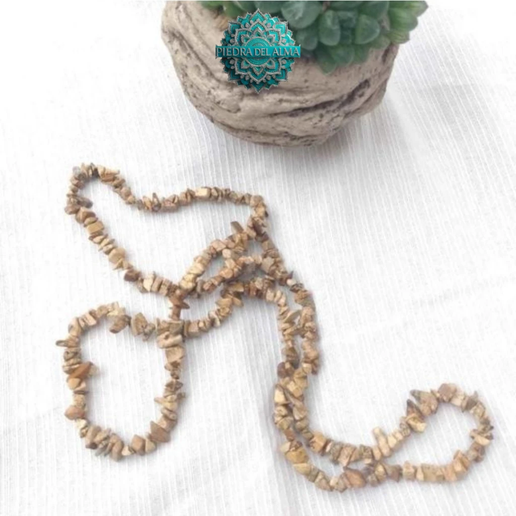Collar largo de escallas de piedra natural de Jaspe Madera o Paisaje