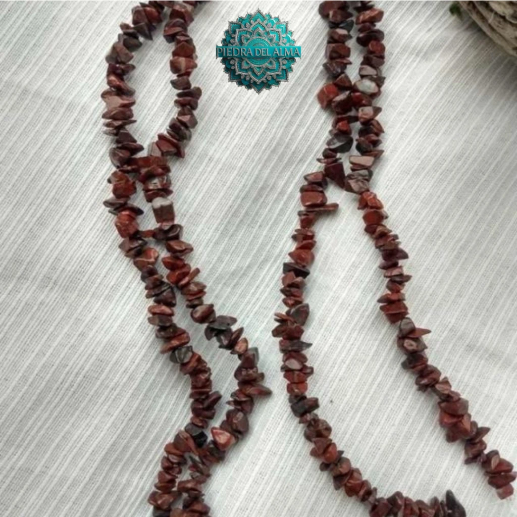 Collar largo de escallas de piedra natural de Jaspe Rojo