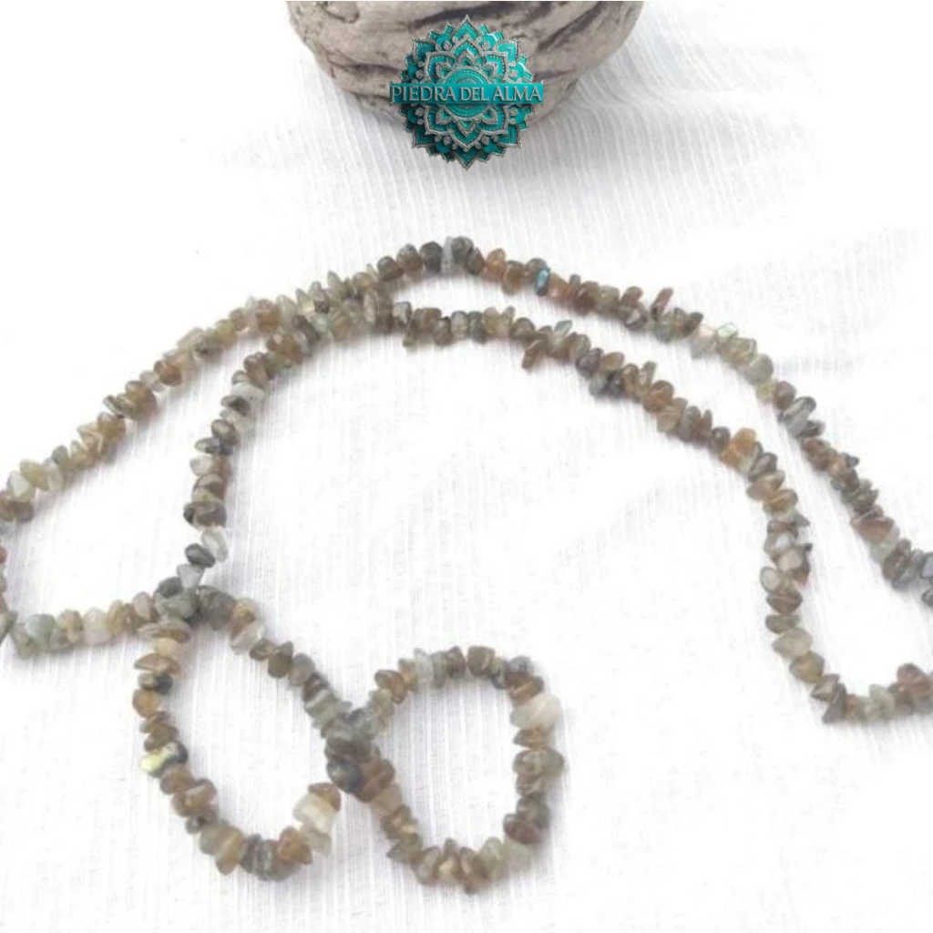 La labradorita alinea los cuerpos físico y etérico, estimula la intuición y los dones psíquicos. Psicológicamente disipa miedos e inseguridades. Fortalece la fe en el yo y la confianza en el universo. Calma la mente hiperactiva y energiza la imaginación, aporta también contemplación e introspección.