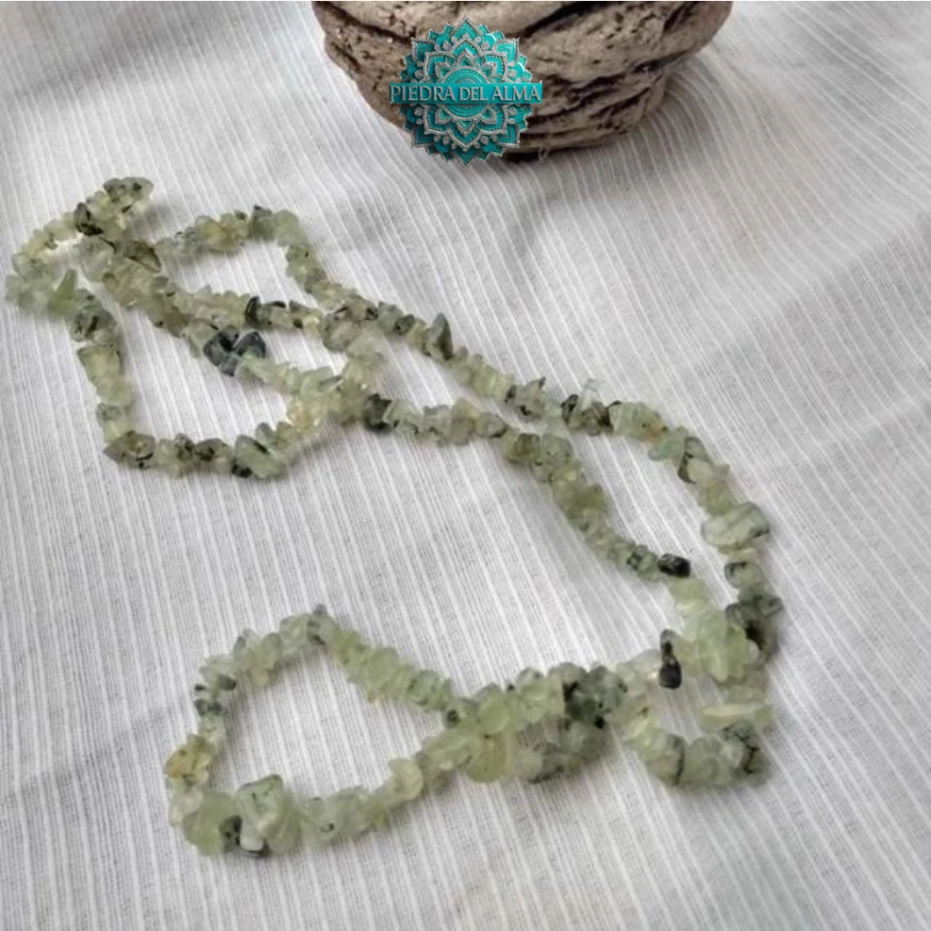 Collar largo de escallas de piedra natural Prehnita