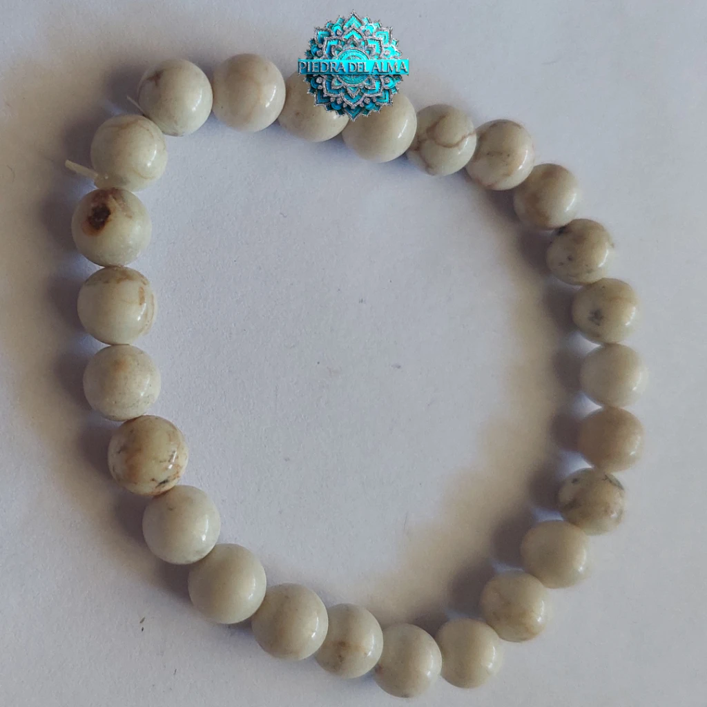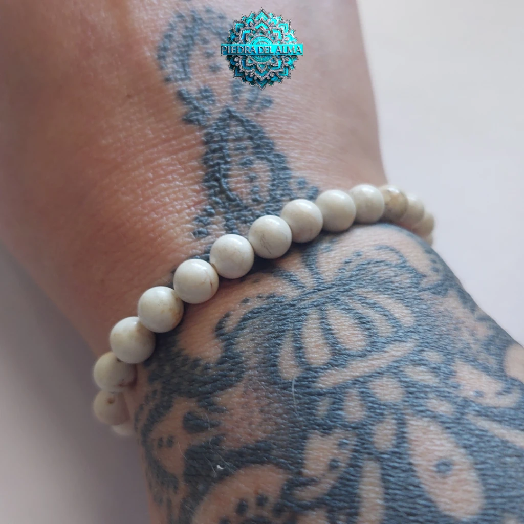 Pulsera de cuentas de 6 mm en Howlita Blanca.