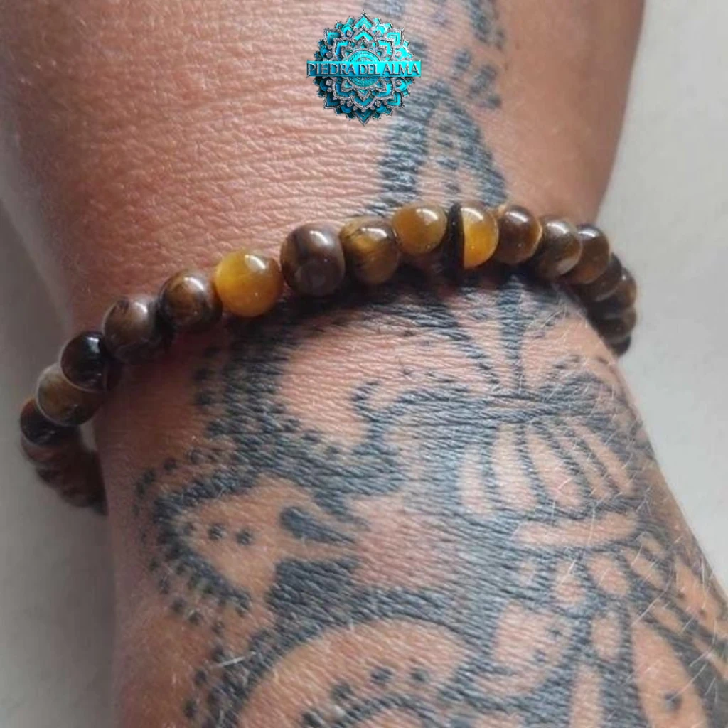 Pulsera rígida de cuentas de 6 mm en piedra natural de Ojo de Tigre de la India